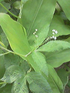 撮影場所:背後家の畑 ちっちゃくてわかり難いんですが、さて、なんでしょう? これの花って、あんまり見ないかな、と思いますが……。 答えはミツバ。自生しております。 後ろに見えるのは、同じく自生してるミョウガです〜。 |