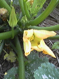 撮影場所:背後家の畑 これまた、ぱっと見じゃ何だかわからないかも……。 ズッキーニの花だったりします。 今年から畑で栽培してるんですが、いや育つ育つ、増える増える。 葉っぱが人の顔くらいの大きさになるとは思いませなんだ。 |